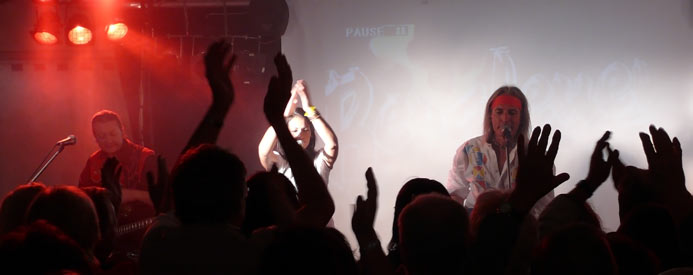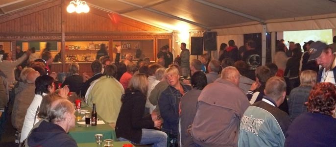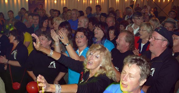 | Fanclubs aus Deutschland, Österreich und Schweden brachten sofort Stimmung auf die Tanzfläche, als BERGFEUER mit dem Konzert begannen. |