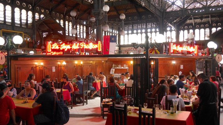 Mittagessen im traditionellen Fischmarkt der Hauptstadt.