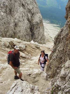 Für den Freitag plante Hartmut, Stefani und Renè die Klettersteigbegehung am Sas Rigais in der Geislergruppe. Ein lohnendes Ziel mit beeindruckenden Talblicken ins Villnösstal. |