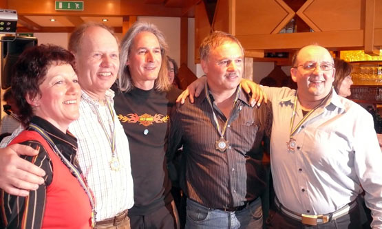| Später trafen alle in der Bar Alpenhit ein, um eine Abschlussparty mit Siegerehrung der besten Schätzer zu veranstalten. Gewertet wurde dabei die geringste Differenz zwischen selbst geschätzter Zeit und der tatsächlich gefahrenen. Somit hatte jeder gute Chancen. |