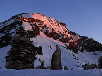 Gefrorene-Wand-Spitze beim Sonnenaufgang