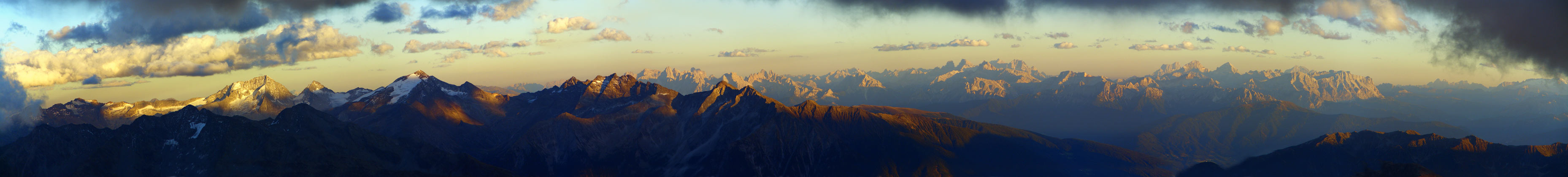 Ausblick vom Schwarzenstein zum Hochgall bis zu den Kreuzkofelwänden in den Dolomiten