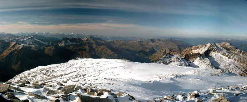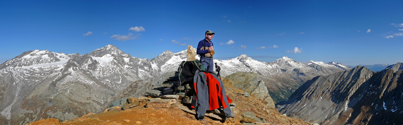 "Gefrorenen Wandspitze" und dem "Olperer". Nach Süden hin liegt einem der ganze