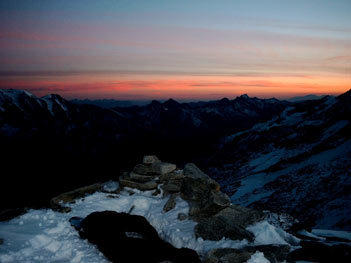 bis zu einer Firnmulde unterhalb des Gipfels führt. Auch im Sommer wird man hier