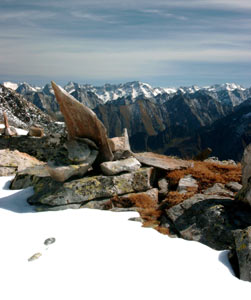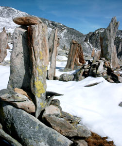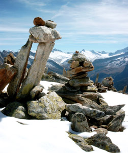 Hütte (ehemals jüdische Sektion) viele Steinmänner aufgestellt. Ihre Bedeutung